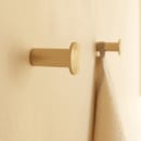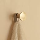 Håndklædekrogen er fremstillet i metal med en trykpåført PVD overfladebehandling i en børstet guld farve.