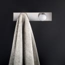Håndklædeholderen fra Cosmics badeværelsesserie Architect består af en stringent og strømlinet bagplade, hvorpå to kroge i rundt design er fastmonteret. Krogene har en forhøjet kant, som forhindrer at håndklæderne eller badekåben falder ned.