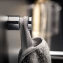 Håndklædekrogen fra Cosmics badeværelsesserie Architect er i et elegant rundt design, med forhøjede kanter, som forhindrer at håndklædet falder ned.