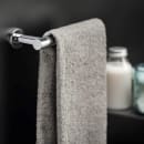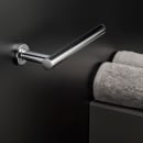 Den enkle og veldesignede håndklædestang er holdt i flotte cirkulære former, og tilfører et gennemført og rent udtryk til dit badeværelse. Den åbne detalje i den ene side tilfører et særligt og eksklusivt udtryk til rummet.