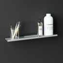 Den stilrene og stringente badeværelseshylde fra Cosmic, kan både monteres i baderummet såvel som i badeværelset.