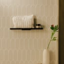 Den lille kant yderst på badeværelseshylden forhindrer, at dine badeartikler eller pyntegenstande falder ned af hylden, og bidrager samtidigt til et gennemført og stilrent design.