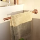 Cosmic håndklædeholderen er fremstillet i metal, og derefter belagt med en trykpåført pvd overfladebehandling i farven børstet kobber. En pvd behandling bidrager til et slidstærkt produkt, og sørger for at det ikke patinerer med tiden.
