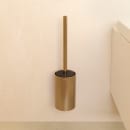 Toiletbørsten og holderen er fremstillet i metal med en trykpåført PVD overfladebehandling i en børstet guld farve.
