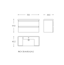 Det grebsfrie design og den blanke overflade gør rengøringen let og udtrykket enkelt. Skufferne har plads til alt fra hårtørrer til makeup og små artikler, så du slipper for rod på vasken. Vaskens dybde giver dig nok plads – uden at møblet fylder unødigt.