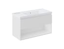 Skab ro og orden på badeværelset med denne møbelpakke fra Cosmic B-Best. Her får du både et solidt underskab og en elegant teckstonehåndvask i ét samlet sæt. Den matte, hvide overflade skaber et lyst udtryk og får selv små rum til at virke større. Med en skuffe og en åben hylde er det nemt at organisere både det, du bruger dagligt, og det, du helst vil gemme væk. Perfekt til hverdage med fart på – og til dig, der sætter pris på orden og æstetik i ét.