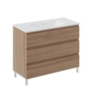 Få styr på hverdagen med denne møbelpakke fra B-Best serien – en løsning i valnødlook og rene linjer, der passer perfekt til det moderne badeværelse. Med tre rummelige skuffer og en integreret porcelænsvask får du både opbevaring og funktion samlet ét sted. Et godt valg til det mellemstore eller store badeværelse.