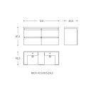 Størrelsen på 120 x 45,5 x 61,5 cm gør møblet ideelt i rum, hvor der er mere plads. Designet spiller op til både skandinaviske og mere minimalistiske stilarter, og dobbeltvaskens glatte kanter skaber en helstøbt helhed.