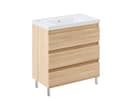 Få styr på hverdagen med denne møbelpakke fra B-Best serien – en løsning i egelook og rene linjer, der passer perfekt til det moderne badeværelse. Med tre rummelige skuffer og en integreret teckstonevask får du både opbevaring og funktion samlet ét sted. Et godt valg til det mellemstore eller store badeværelse.