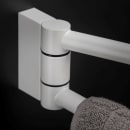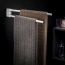 Håndklædestængerne er justerbare, og kan rykkes til siden, så det er nemmere at hænge håndklæder på dem, og samtidigt skabe luft mellem de våde håndklæder.
