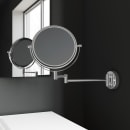 Spejlet er beregnet til vægmontering, og kan, takket være den bevægelige arm, foldes helt sammen, så det flugter med væggen og dermed ikke optager unødvendigt plads på badeværelset.