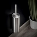 Den diskrete cylinderformede toiletbørste består af børstehoved, stang og en flot rund beholder. Det praktiske låg er med til at gemme selve børstehovedet væk, når toiletbørsten er placeret i den væghængte beholder.