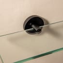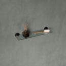 Den væghængte badeværelseshylde er fremstillet i glas og monteret i to vægholdere, som er i en smuk mat sort farve.