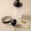 Den smukke væghængte sæbedispenser fra Cosmic er holdt i et stilrent og klassisk design, som fuldendes af kombinationen af matteret glas og den smukke mat sorte farve.
