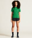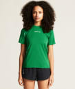 T-shirten er fremstillet i genanvendt polyester, og den er udstyret med nakkebånd, som bidrager til en mere stabil pasform ved halsudskæringen. Det gør den velegnet som træningsshirt, når du vil have en model, der er enkel i snittet, men med praktiske detaljer. Uanset om du bruger den alene eller som et lag under en trøje, er fokus på funktion og et let, hurtigtørrende materiale.
