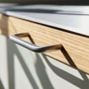 D Line grebet er skabt til dig, der sætter pris på det enkle. Med rene linjer og en børstet overflade i rustfrit stål skaber det et harmonisk udtryk på både køkkenskabe og kommoder. Designet af Knud Holscher, en af Danmarks mest anerkendte arkitekter, balancerer det visuelle ro med materialer i høj kvalitet. Det her er grebet, du vælger, når du vil lade detaljerne tale – uden at de larmer.