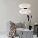 Daburu pendel fra Markslöjd i tekstil. 1,5m gennemsigtigt kabel. Monteres med krog. Skærmen er lavet af 90% polyesterfiber og 10% polyurethanfiber. 2xE27, Max 40W. Lyskilder medfølger ikke.