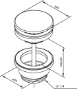 Bundventilen måler 63 mm i diameter, og er i et åbent design, hvor den altid står åben. Den anvendes derfor til håndvaske uden overløb.