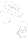 Vandhanen er i et flot, blankt krom finish, som den medfølgende bundventil også er. Bundventilen betjenes med træk-op stang ved armaturets base.