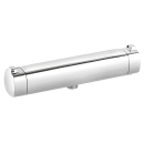 Termostatarmaturet kommer blandt andet med antiskoldning (spærring ved 38°), der forhindrer, at man kan komme til at åbne for det allervarmeste vand ved et uheld.