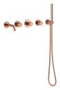 Damixa Silhouet BS2 indbygningskararmatur med brusesæt er til dig, der ønsker et komplet sæt, som går i ét med væggen og giver dig frihed til at nyde karbadet uden visuel støj. Farven kobber PVD er et tidløst og populært valg, som komplimenterer karsystemets udtryk.