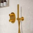 Rengøringsvenligt messingfarvet brusesæt til indbygning