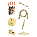 Rengøringsvenligt messingfarvet brusesæt til indbygning