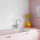 Touchless armaturet kombinerer design med berøringsfri teknologi, og giver dig et køkkenarmatur, der giver dig frihed til at vælge mellem traditionel betjening med greb, hvis du skal fylde en gryde med vand eller skrælle kartofler, og berøringsfri betjening, hvis du står med smuds eller kødsaft på fingrene.