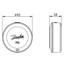 Rumføleren måler både temperatur og fugtighed og sender denne information videre til Danfoss Ally radiatortermostaten via Ally Gateway´en.