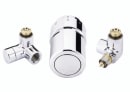 Danfoss RTX ventilsæt med returtermostat i venstre side og 1/2" tilslutning til både radiator og rørsystem. I sættet medfølger reguleringsventil, afspærringsventil og termostatisk element. Passer til håndklæderadiatorer af "stigetypen".