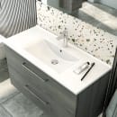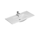 Amber håndvask fra Dansani er fremstillet i sanitetsporcelæn og har et stort bassin med tynd bordplade og bassin med geometrisk stram udformning.