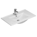 Amber håndvask fra Dansani er fremstillet i sanitetsporcelæn og har et stort bassin med tynd bordplade og bassin med geometrisk stram udformning.