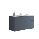 Den rummelige løsning på 121 cm byder på et vaskeskab med to skuffer og en firkantet porcelænsvask, der tilsammen skaber en rolig og harmonisk atmosfære. Det matte, ensfarvede udtryk og de rene linjer gør møblet til et naturligt samlingspunkt – uanset om du bor alene, har travle morgener med familien eller bare sætter pris på et indbydende rum.