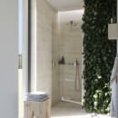 De vendbare brusedøre er 200 cm høje, og fås med profiler og runde greb i enten sort eller satin. Alle brusedøre og den faste væg kan kombineres med Tower, som er en vendbar reol med flytbare hylder, der hjælper dig til et opryddet og organiseret badeværelse.