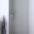 Den vendbare brusedør kan åbnes både indad og udad, hvilket gør den ideel til badeværelser med begrænset plads, ligesom den, via den justerbare profil, kan tilpasses skæve vægge.
