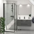 De vendbare brusedøre er 200 cm høje, og fås med profiler og runde greb i enten sort eller satin. Alle brusedøre og den faste væg kan kombineres med Tower, som er en vendbar reol med flytbare hylder, der hjælper dig til et opryddet og organiseret badeværelse.