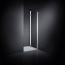 De vendbare brusedøre er 200 cm høje, og fås med profiler og runde greb i enten sort eller satin. Alle brusedøre og den faste væg kan kombineres med Tower, som er en vendbar reol med flytbare hylder, der hjælper dig til et opryddet og organiseret badeværelse.