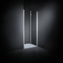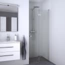 Den vendbare brusedør åbnes indad, hvilket gør den ideel til badeværelser med begrænset plads, og på samme tid holdes vandet inde i brusekabinen.
