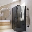 Den vendbare brusedør kan åbnes både indad og udad, hvilket gør den ideel til badeværelser med begrænset plads, ligesom den via den justerbare profil, kan tilpasses skæve vægge.