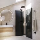 De vendbare brusedøre er 200 cm høje, og fås med profiler og runde greb. Alle brusedøre og den faste væg kan kombineres med Tower, som er en vendbar reol med flytbare hylder, der hjælper dig til et opryddet og organiseret badeværelse.