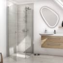 Den vendbare brusedør åbnes både indad og udad, hvilket gør den ideelle til badeværelser med begrænset plads, ligesom den, via de justerbare profiler, kan tilpasses skæve vægge.
