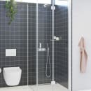 Har du skæve vægge eller gulve på dit badeværelse, kan den vendbare brusevæg nemt tilpasses ved hjælp af den justerbare vægprofil, som kan justeres med 20 mm, mens den medfølgende gulvprofil kan justeres med op til 12 mm.
