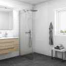 Har du skæve vægge eller gulve på dit badeværelse, kan den vendbare brusevæg nemt tilpasses ved hjælp af den justerbare vægprofil, som kan justeres med 20 mm, mens den medfølgende gulvprofil kan justeres med op til 12 mm.