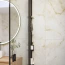 Med Dansani Match Tower brusehylde, model D, 10 cm, sort profil får du en gennemtænkt løsning til opbevaring i bruseren, hvor både funktion og æstetik er i fokus. Denne høje og slanke brusehylde udnytter pladsen optimalt og tilfører brusenichen et moderne udtryk med sin sorte, matte aluminiumsprofil.