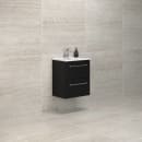 Pakken består af et væghængt Mido+ underskab i sort samt en kompakt Amber Mini håndvask i slidstærkt sanitetsporcelæn.