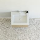 Larghetto håndvasken fra Dansani er fremstillet i et slidstærkt sanitetsporcelæn, som med sin blanke overflade og afrundede hjørner er nem at rengøre.