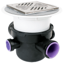 - Ø110 mm udløb med tre tilløbsstudser, 2 stk Ø50 mm og 1 stk Ø75 mm