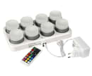 Pakken indeholder: 8 lys, 1 stk. base, 1 stk. adapter og 1 stk. fjernbetjening.
