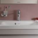 B.1 håndvaskarmaturet fra Duravit fremstår i et klassisk og tidløst design, som gør sig godt på ethvert badeværelse. Den minimalistiske fremtoning, fuldendes af den blanke krom overflade og forsyner rummet med et rent udtryk.