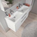 Med Duravit D-Code dobbelt hĂ„ndvask fĂ„r du en rummelig lĂžsning, der gĂžr morgenrutinerne nemmere for hele familien. Den brede vask pĂ„ 120 cm har to separate kummer og to hanehuller, sĂ„ to personer kan bruge badevĂŠrelset samtidigt â perfekt til travle morgener eller familier med flere bĂžrn.